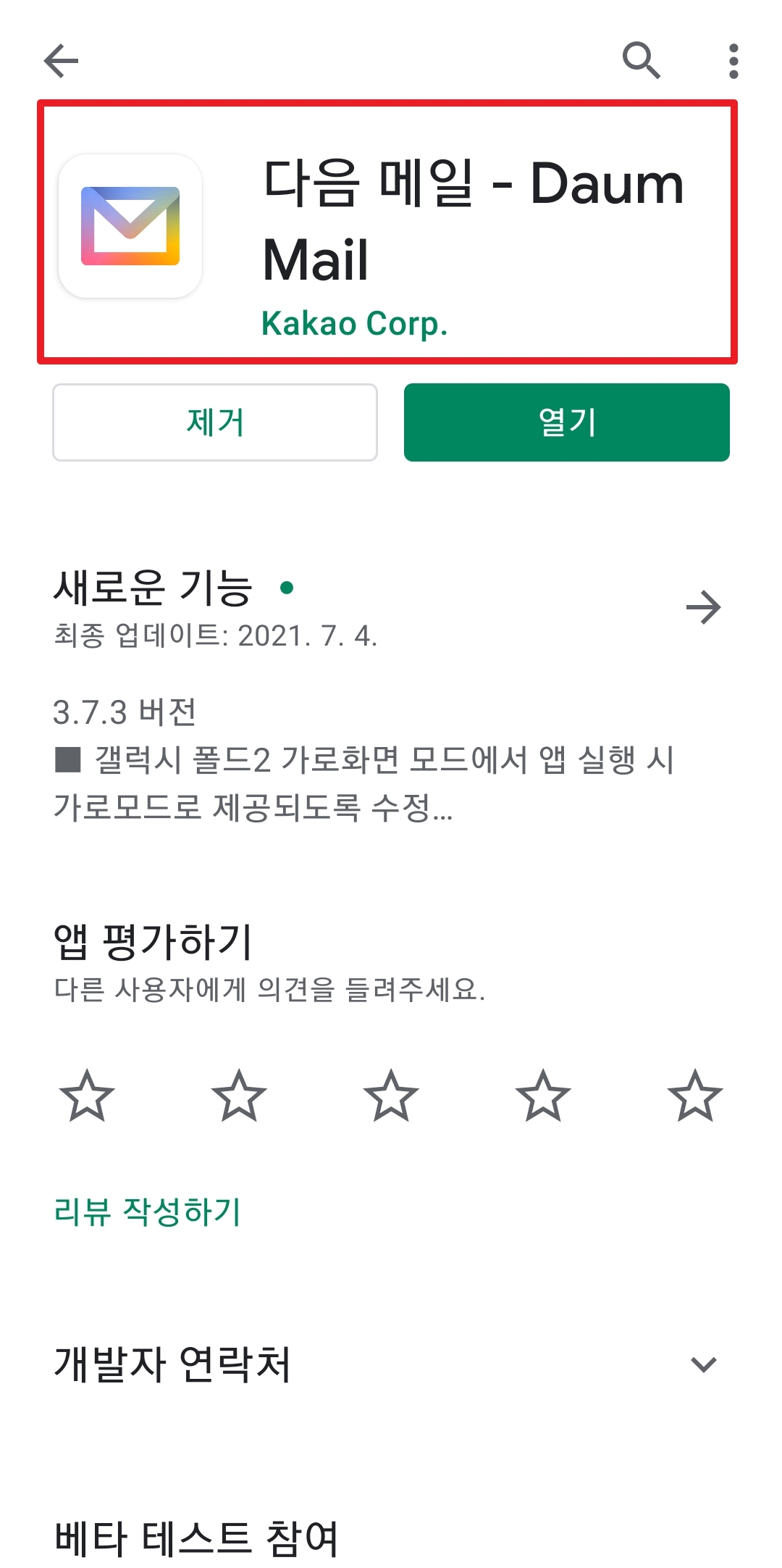 우선 앱을 설치해야겠지요? 다음앱이 아니고, 다음 메일 앱입니다.