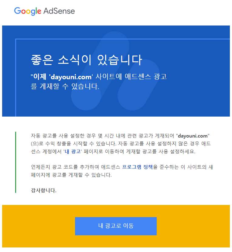구글애드 승인을 받았습니다.