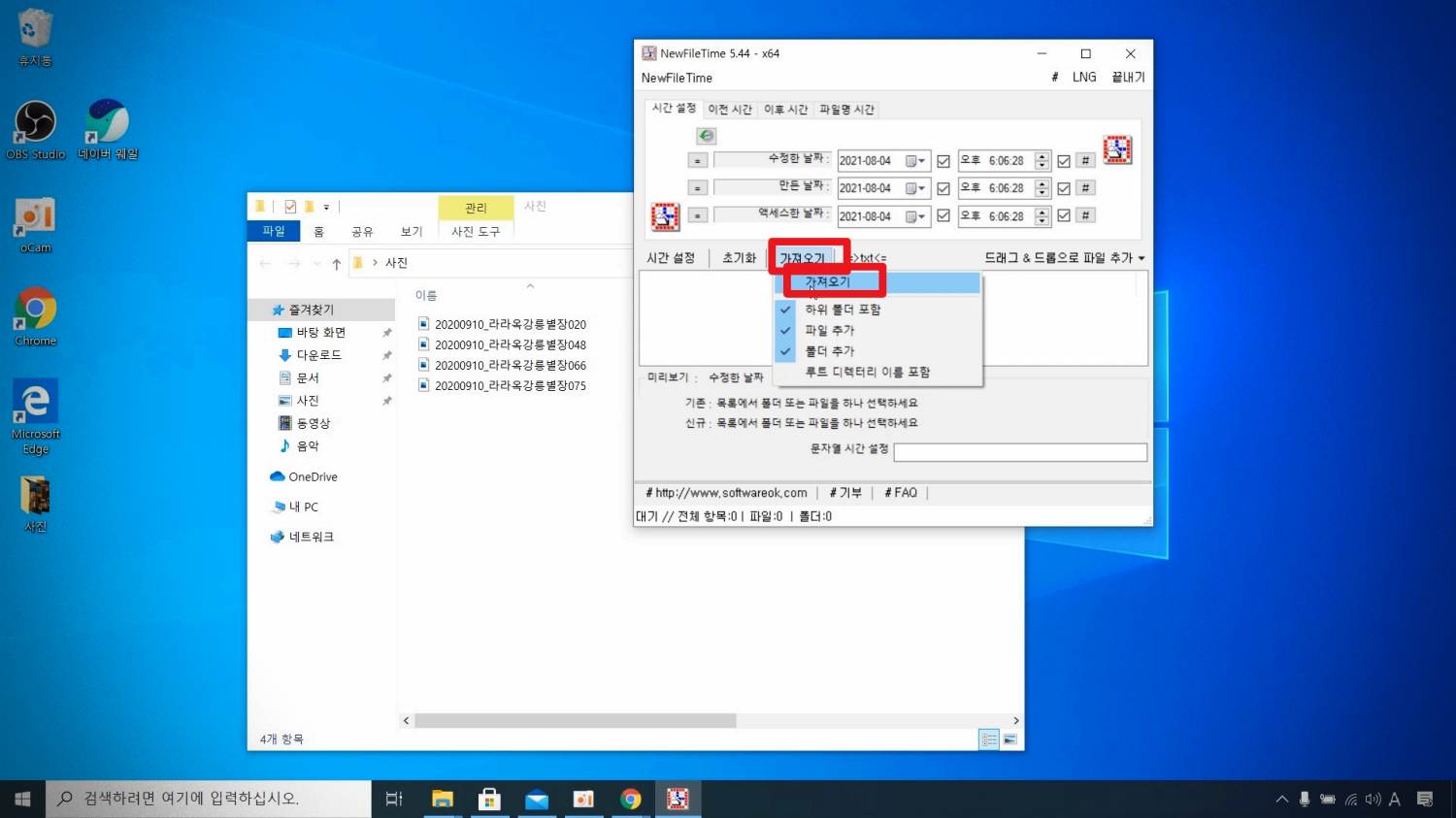 newfiletime을 실행하여 날짜 바꾸는 방법