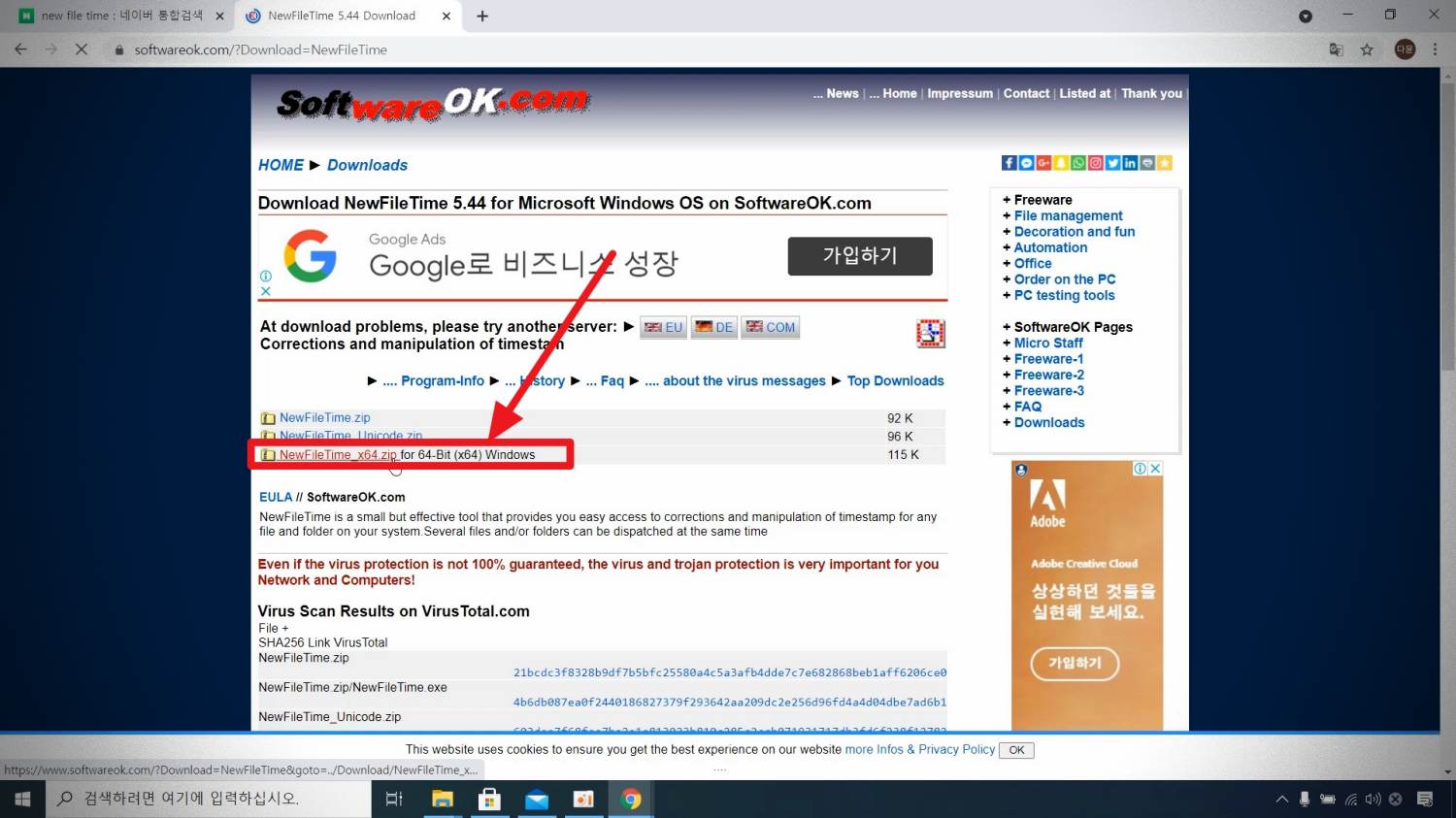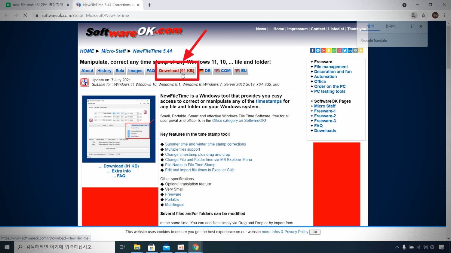 1.newfiletime를 검색한후 홈페이지로 들어갑니다.