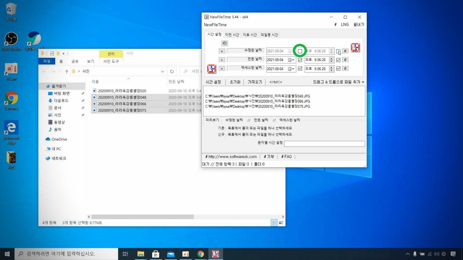 이렇게 파일의 만든 날짜 나 수정한 날짜, 혹은 둘다를 임의로 조정할 수 있습니다.