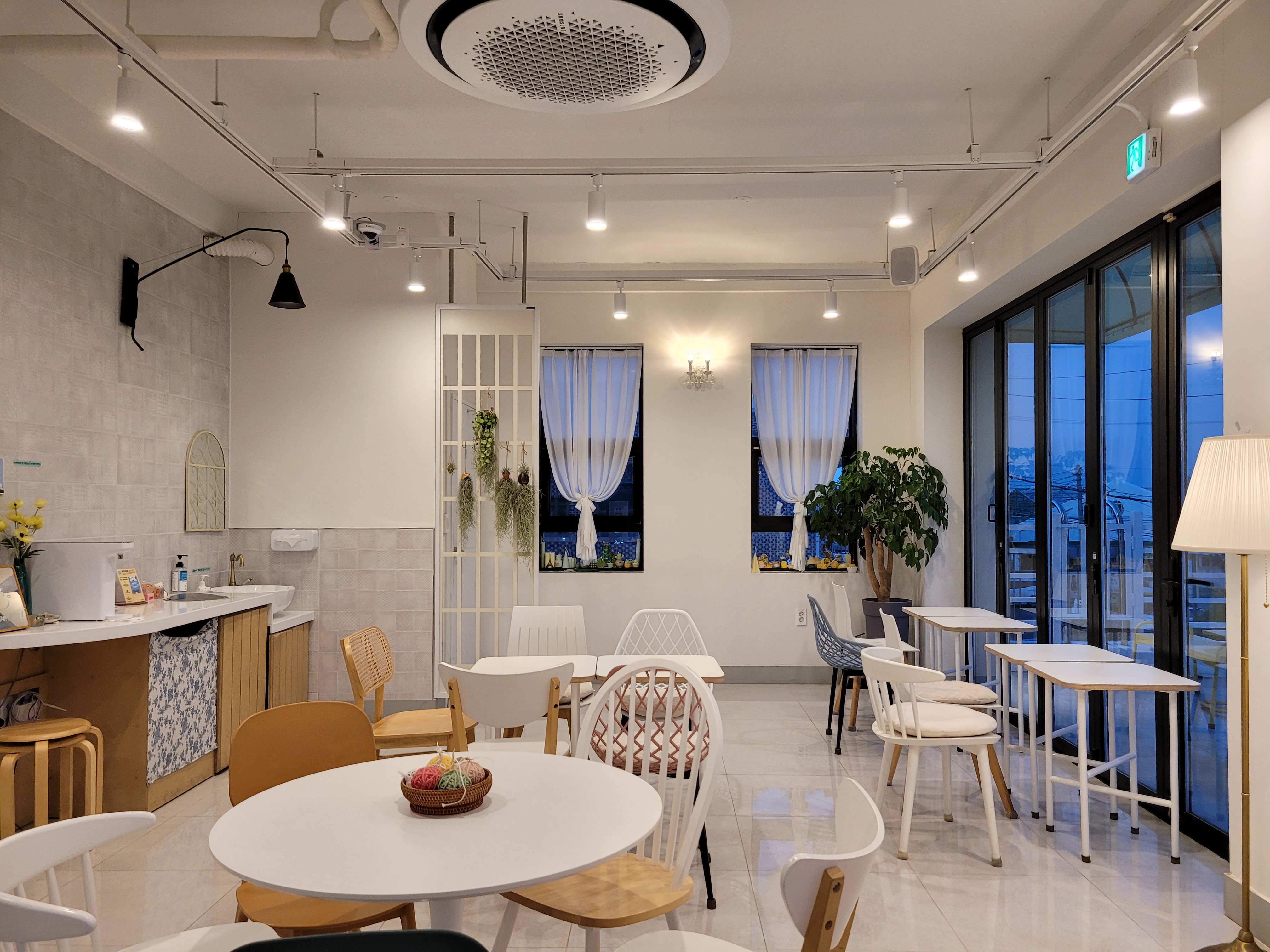 2층짜리 건물입니다. 가게 인테리어 집기에 투자를 많이 하셨구나 싶은 생각이이 들었습니다. 요즘은 어딜 가나 경쟁적으로 인테리어를 하더라고요, 화이트 바람이 불었는지. 흰색 카페들이 참 많이 생긴것습니다.