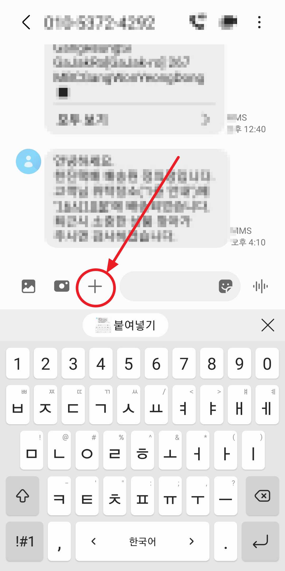 설명은 삼성 갤럭시 ‘메시지’로 합니다만, 다른 안드로이드 스마트폰은 다 비슷하기 때문에 찾아보시면 분명 있을 겁니다. 아무튼 예제에서는 “>”를 선택합니다.